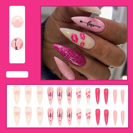Cross border hot selling mid to long length European and American foreign trade nail art pieces, pure color, fresh and white, glittering powder, wearing nails, fake nails wholesale