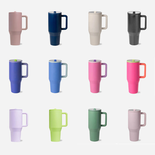 HydroJug Traveler - Modern 40 oz Tumbler with Handle & Simple Flip Straw - Car Cup Holder Friendly, Leak Resistant Water Bottle-Reusable Insulated Stainless Steel & Rubber Base - Gifts for Women & Men